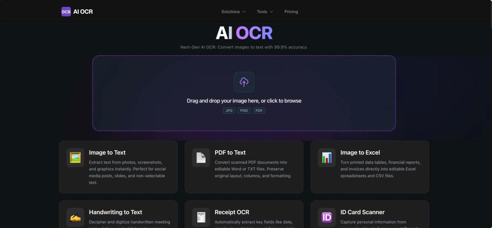 AI OCR is a next-generation, free online document scanner that leverages advanced AI to convert images and PDFs to text with up to 99.9% accuracy. It stands out from traditional OCR by mimicking human reading capabilities through complex neural networks, offering superior performance, especially with challenging content like handwriting.