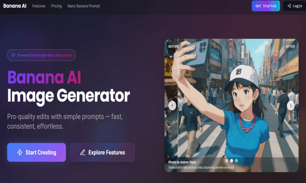 Banana AI is a cutting-edge, free AI image and video generation platform designed to simplify and enhance photo editing and creation. It offers a powerful toolkit for transforming photos, generating images from text, creating cinematic videos, applying diverse artistic styles, performing smart background removal, and restoring images with remarkable ease and speed. Unlike traditional photo editors that demand intricate manual masking and layering, Banana AI allows users to describe desired changes in plain language, with the AI automatically applying edits and providing simple controls for fine-tuning.