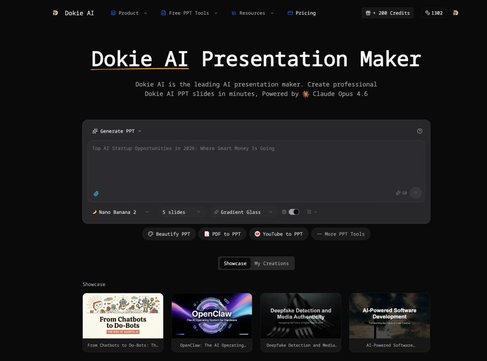 Dokie AI is a revolutionary AI presentation maker designed to transform your ideas into polished, professional PPT slides in minutes. Leveraging cutting-edge artificial intelligence, Dokie AI acts as the most advanced AI PowerPoint generator, meticulously handling design, layout, and content structure. Whether you're a business professional, an educator, or a content creator, Dokie AI delivers consistently professional results, making it the future of presentation creation.