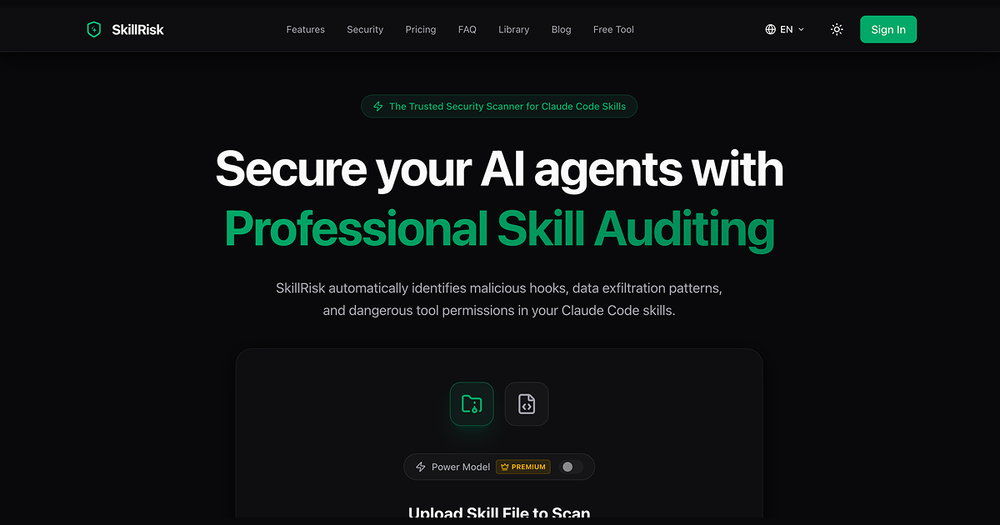 SkillRisk is a cutting-edge, free agent skill security analyzer specifically designed for Claude AI. In the rapidly evolving landscape of artificial intelligence, ensuring the security of AI agents and their integrated skills is paramount. SkillRisk addresses this critical need by providing a robust platform to meticulously scan and identify potential vulnerabilities before these agents are deployed into production environments.