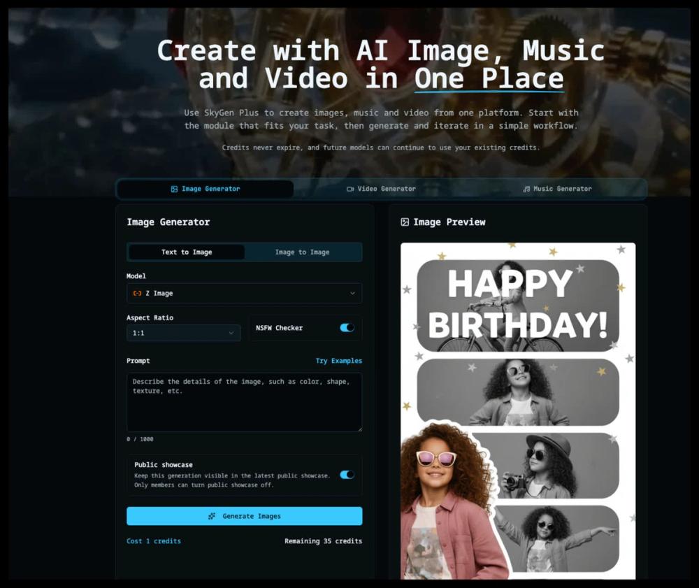 SkyGen Plus stands out by offering three powerful AI capabilities within a single platform, eliminating the need to switch between multiple tools. Its flexible workflows support both experimental drafts and publishable creative assets. A significant advantage is that credits never expire, and any future models added to the platform can be used with existing credits, providing long-term value and flexibility for creators. This makes SkyGen Plus an ideal solution for individuals and teams seeking an efficient, comprehensive, and future-proof AI creative toolkit.
